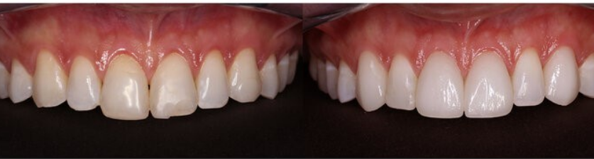 cementojë atë në dhëmbët e riformuar në të dyja anët e boshllëkut, duke krijuar pamjen e dhëmbëve me formë të mirë.